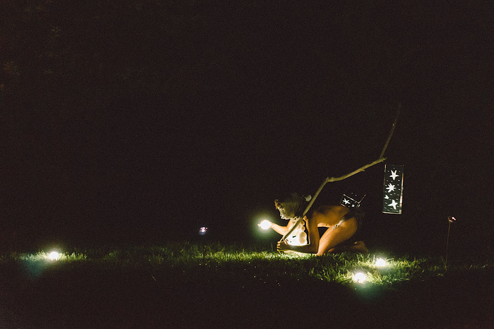 Inclusivity at raves can be a bit of a gamble—open the gates too wide, and you never know who might walk in. But at Osmosis, a certain cultural porousness felt refreshing, allowing for a freak alliance you might not see on more traditional dancefloors. The next evening, performance artist Kai Hynes emerged from the swimming pool like a spectral frog-god, the cold, black water licking his skin as orbs of light dangled from his slowly rotating neck. On the other side of the field, past a group of local wooks howling at the moon, was La Bohème—a caravan where Oscar Wilde-channeling bohemians and pale goths in Victorian gowns told ghost stories to guests over tea, absinthe, and rose-flavored hookah. Such a frou-frou display of dandyism felt quintessentially Portland—the hosts, Darwin and Jaden, run an underground tea lounge in the city—and somehow, the perfect counterpose to Hynes’ avant-garde butoh.
